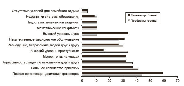 Рис. 2. Рейтинг городских и личных проблем, волнующих москвичей (в процентах)