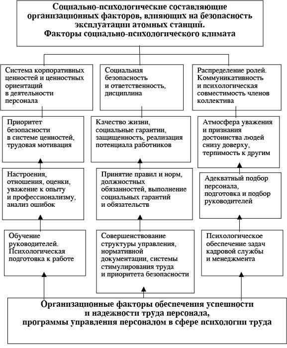 Рис. 1. Социально-психологические факторы и факторы психологии труда как объекты деятельности в системе работы по управлению персоналом и организации производства в эксплуатации АЭС