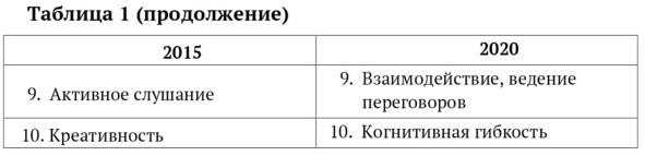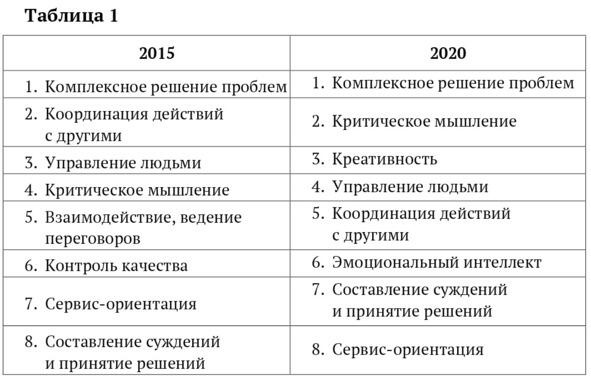 Для сравнения аналитики http://www.weforum.org/ представили таблицу, какие навыки были актуальны для успешной карьеры в 2015 году и какие важны в 2020-м. (таб. 1)