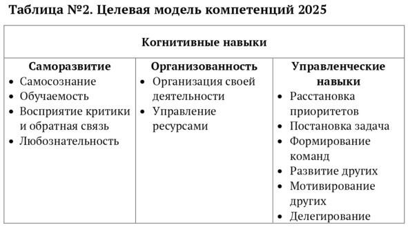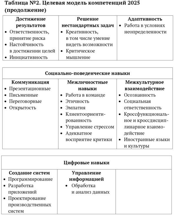 Агентства стратегических инициатив и МШУ «Сколково» спрогнозировали свою модель компетенций на 2025 год (таб. 2).