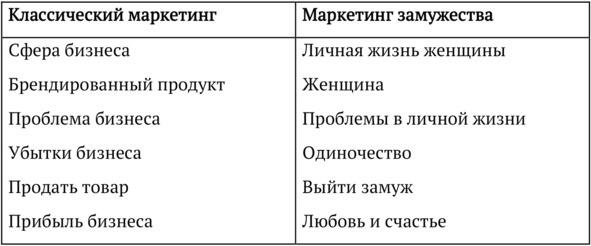 Прежде чем двигаться дальше, предлагаю вам для наилучшего понимания познакомиться с терминологией маркетинга замужества в параллели с классическим маркетингом: