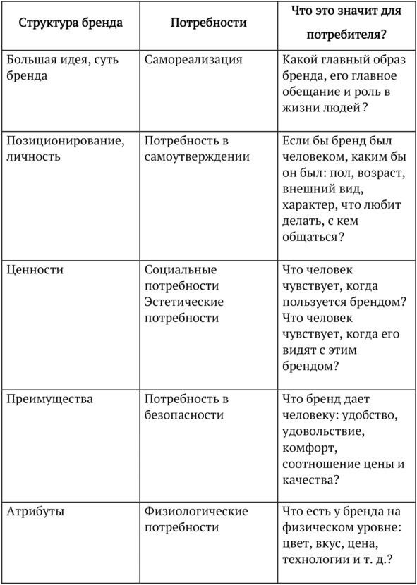 Любой бренд имеет структуру, отвечающую уровням потребностей человека, о которых мы говорили выше: