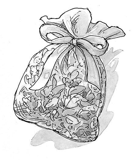 «Миссис Девайн научила меня делать саше. Так по-французски называется мешочек с сухими цветами. Туда также можно положить палочку корицы или гвоздику, чтобы аромат стал ещё приятнее».