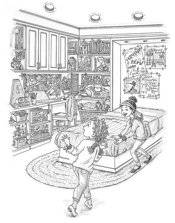 Нэнси переступила порог и медленно повернулась кругом. До того дня она ни разу не бывала в комнате подростка. Вся мебель была встроенной. Письменный стол, книжные полки, комод, и даже кровать была спрятана в стене, пока Бри не потянула за ручку. Тогда вуаля! кровать появилась из стены будто по волшебству. Покрывало на ней было фиолетово-оранжевое, в полоску. Прикроватный коврик тоже был фиолетово-оранжевый, только не в полоску, а в горошек. О-ля-ля-ля-ля!