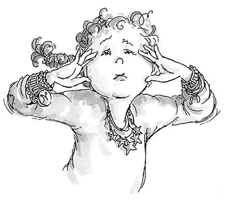 Перед сном Нэнси приготовила себе одежду на завтра. Полосатые легинсы. Фиолетовая толстовка. И её любимые туфли. Они были золотисто-блестящие и почти новые. Тут Нэнси вдруг подумала: а вдруг дождь? И чем больше она об этом думала, тем увереннее становилась. В итоге Нэнси отставила туфли в сторону и достала старые балетки.