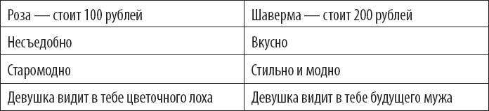 Итак. Ларек у метро, в котором готовят шаверму. На витрине висит плакат. Молодой человек решает подарить девушке цветы, а «наш» продавец предлагает угостить ее шавермой.