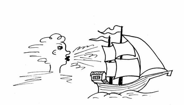 По ветру держит нос.