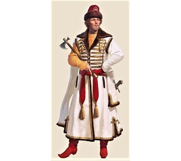 В данном случае речь шла о разновидности русского кафтана ферязи, известного на Руси с X века. Поначалу это была торжественная одежда бояр и князей, но к петровским временам её носили буквально все: посадские и гостевые люди, священники, крестьяне, казаки и мусульмане, те же татары. Для всех подобная одежда давно стала традиционной.