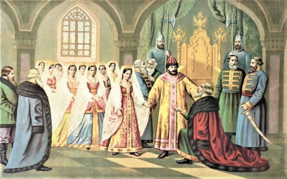 Выбор невесты царя Алексея Михайловича. Хромолитография А. Абрамова