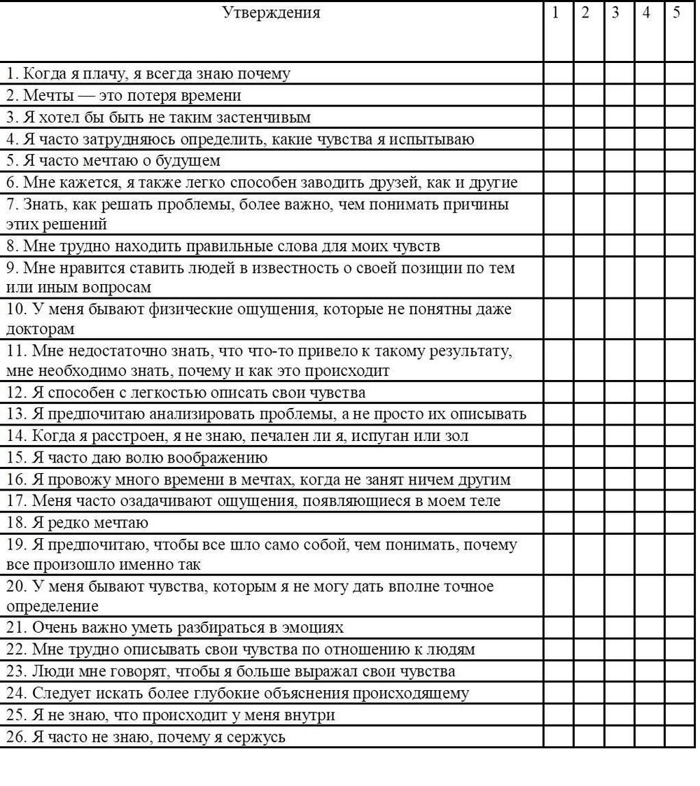 Специальный тест на алекситимию.