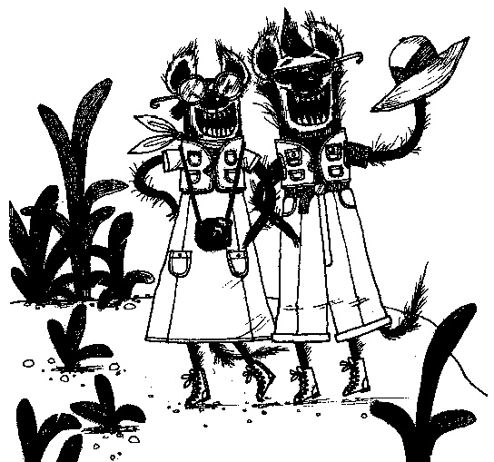 Две гиены, говорившие по-английски, звали их Спот и Сью (и они были влюблены друг в друга) проследили за этой сценой и примчались разнюхать, что осталось от туристов.