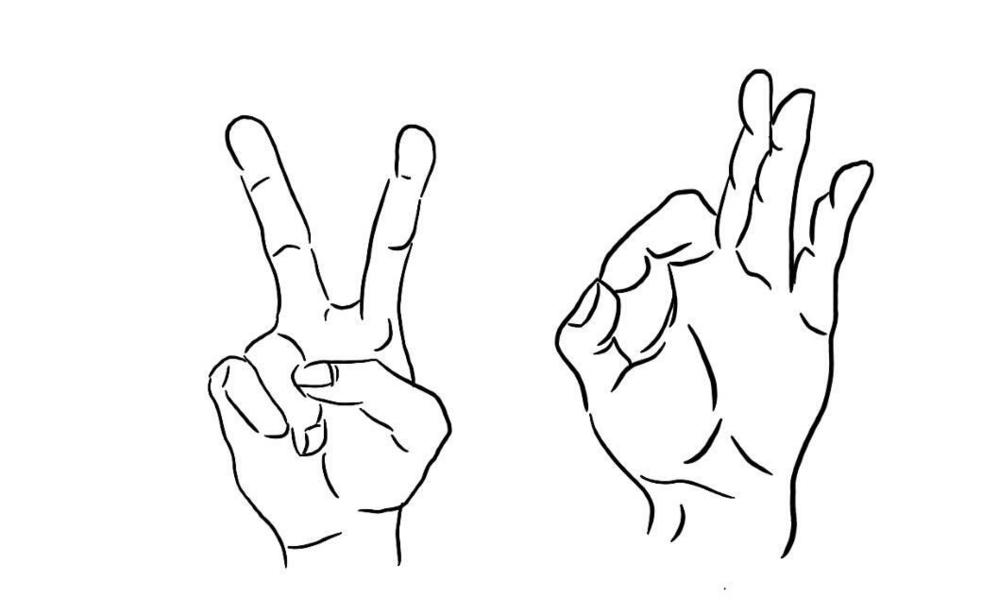 1 «ОК» большой и указательный палец сводим, образуя круг. Остальные пальцы наверх.