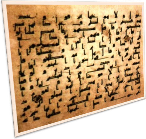 Здесь представлена ранняя форма арабского письма, получившая название куфической, существовавшей наряду с курсивным письмом насх. Как видно из этого рукописного фрагмента Корана (910 век), для куфического письма характерен жирных шрифт. Современная арабская письменность с изящными согласными знаками происходит из более раннего письма насх, которое является курсивным и наклонным. В арабском письме обозначаются только согласные. Поэтому его называют консонантным письмом. Три из 28 букв, при помощи огласовок, используются для обозначения долгих гласных алиф, вав, йа. Направление письма, как и у финикийцев, справа налево. Большинство букв, за исключением шести, имеет четыре начертания в зависимости от того ставятся они в начале, в середине или в конце слова, и кроме того, каждый знак имеет изолированное начертание. Различаются следующие графические формы букв: конечная, срединная, начальная и изолированная (обособленная).