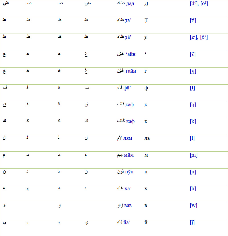 Во второй половине VII в. были введены дополнительные строчные, надстрочные и подстрочные значки для дифференциации сходных по написанию букв, для обозначения долгих и кратких гласных, удвоения согласных и отсутствия гласных. Если мы подробнее рассмотрим образец арабского орнаментального письма, то мы заметим, что некоторые пары букв образуют на письме лигатуры соединенные написания.