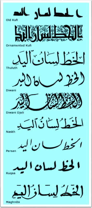 Информация из википедииПринято выделять шесть основных почерков арабского письма: