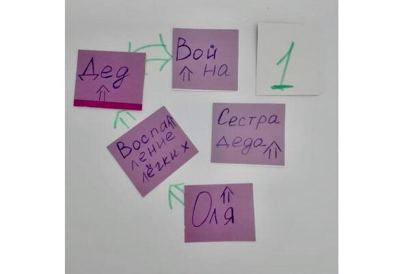 Правильный ответ на фото 2. Чтобы симптом Оли смог быть вылечен, нам важно дать место сестре деда, ее болезни и связи войны и болезни. Важно разграничить прошлое и настоящее, при этом оставив дедушку в качестве ресурсной фигуры за спиной у Оли. А теперь подробнее.
