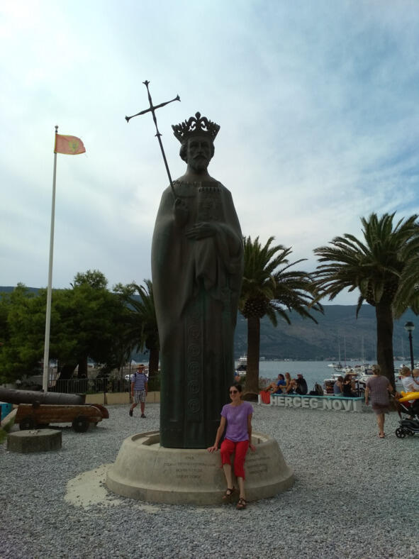 Последний пункт экскурсии г. Нерцег-Нови. Сойдя на берег, мы благоговейно присели в приветственном поклоне, ведь на набережной нас встречал сам Сан-Стефано, точнее его памятник. Город был основан в 1382 году. Его называют ботаническим садом Черногории. И это справедливо. Такого огромного количества разных растений, цветов и фруктов не встречается больше нигде в Черногории. Мы увидели растущие прямо в центре города бананы, кактусы высотой с трехэтажный дом, множество пальм, цветов и экзотических растений. Действительно, Герцег-Нови это самый зеленый город из всех, что нам удалось увидеть в Черногории по распоряжению герцога моряки привозили сюда разнообразные растения со всех уголков мира. Второе название Герцег-Нови город тысячи ступенек, он расположен на склоне холма. Кажется, что здания встроены прямо в скалистые горы и соединяет их бесконечное количество лестниц. Именно поэтому считается, что у местных девушек самые красивые фигуры в Черногории им приходится ежедневно преодолевать тысячи ступеней.