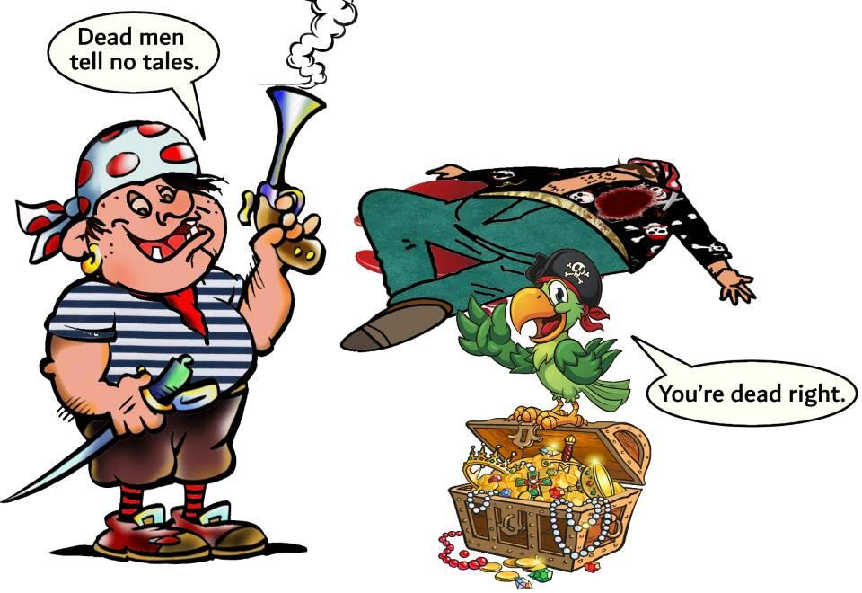 Голос из толпы сказал: Dead men tell no tales. «Мертвые молчат; Мертвые уносят свою тайну в могилу». Tell tales это «рассказывать истории, небылицы».