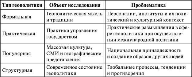 Таблица 1. Основные направления критической геополитики