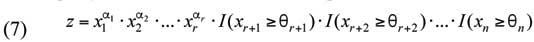 где: g(x1, , xr) уровень качества продукта (потенциально неограниченный сверху), обеспеченного людьми, занимающимися задачами открытого типа успешности (Ушаков, 2011), функция монотонна по каждой из своих переменных; x1, , xr компетентности людей, назначенных на задачи открытого типа, xj 0, j {1, , r}; I (xr+1, , xn) уровень качества продукта (потенциально ограниченный сверху Imax), обеспеченного людьми, занимающимися задачами порогового (закрытого) типа успешности (там же), функция монотонна по каждой из своих переменных; xr+1, , xn компетентности людей, назначенных на задачи порогового типа, xj 0, j {r + 1, , n}.