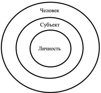 Соотношение понятий «субъект», «личность» и «человек» можно представить в следующем виде (рисунок 1).
