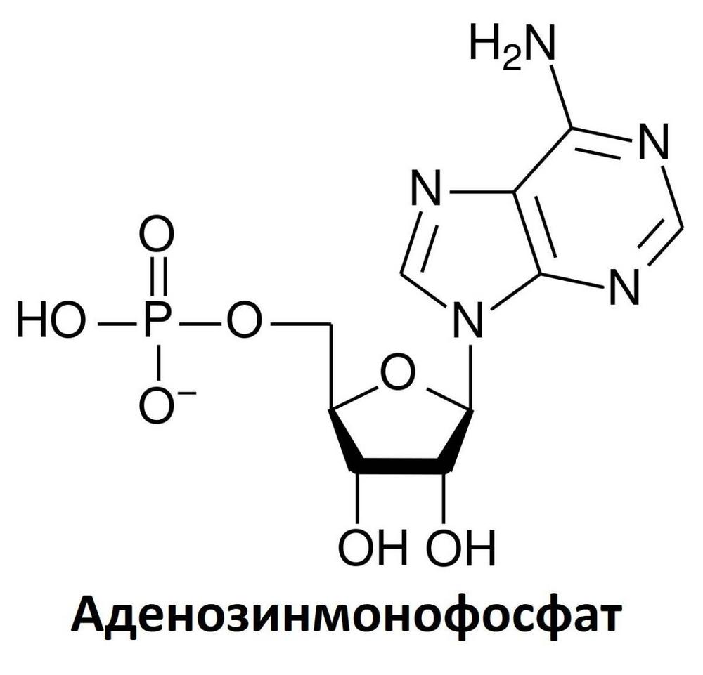 Объединив три составляющие получаем мононуклеотид. На картинке ниже изображен аденозинмонофосфат.