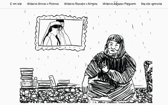 Первая история, за которую удалось зацепиться, история Ханифы и Айчурек. У Ханифы не было возможности полноценно учиться: раннее замужество, насилие в семье, побег от мужа Она справилась снова вышла замуж, родила детей.
