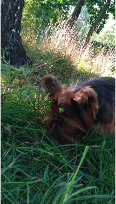 я обычный нормальный Йорк, не мини, не микро и не бебифейс, нормальная и всё тут. В три с половиной месяца попала в новый дом. Хотя нет. В новый мир. Хозяйка меня любила, но хозяин любил бойцовых собак и в дом меня пускали только в мороз, в прихожую, чтобы не застыло ледяной статуей. В общем дом, постройки, огромный двор, огород, будка с алабаем Алексом и наглющим сиамским котом Барином, куры, утки, хрю, му и так далее. Aлекс, меня, принял сразу как сестру. Барин пофыркал, аристократ, но пожмурившись принял и стал дядей.