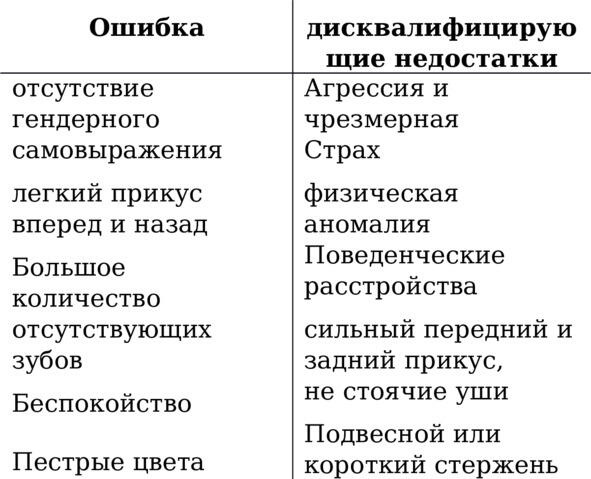Ниже приведен обзор возможных ошибок при разведении:
