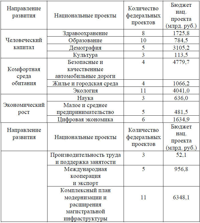 В феврале 2019 г. Правительство России разместило на своем сайте информационные материалы об основных параметрах 12 национальных проектов, которые должны быть реализованы в период до 2024 года для осуществления перехода нашей страны к новой стратегии социально-экономического развития на основе решения комплекса задач научно-технологического прорыва.