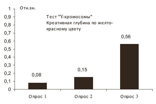 По столбцу видно, за семестр почти в 2 раза возрос показатель числа студентов, наблюдающих движение слоев цветовых образов тестового изображения. Настоящий тест относится к результатам выводов экспериментов на бинокулярном айтрекере (Антипов, 2014). Он показывает, что фокусировка глаз происходит за плоскостью расположения пилотного изображения.