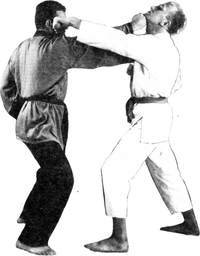 В разделах первого тома книги мы уже не раз останавливались на том, что "дух"КАРАТЭ всегда предписывает применять движения защиты, а не нападения. Никогда не постигнет его истинной техники тот, кто с самого начала своих занятий как следует, не усвоит эту мысль.