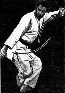 5. Низкое сметающее блокирование. Применяется как от ударов ногами, так и от ударов руками. Передняя нога тут же проводит подсечку.