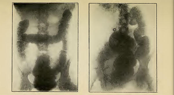 Нормальная толстая кишка. Рентгенограмма, показывающая отсутствие первой половины толстой кишки