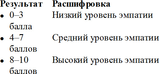 Определите узкие места вашей эмпатии, то есть те утверждения, которые вы оценили в 0 баллов.