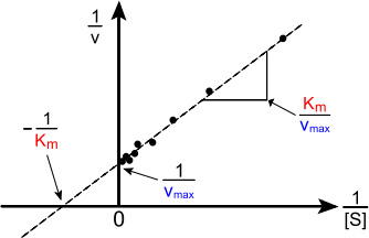 Важнейшей характеристикой ферментативной реакции является константа Михаэлиса (КM) это величина, характеризующая сродство фермента к субстрату; численно равна концентрации субстрата, при которой скорость реакции составляет половину максимальной скорости (Vmax).