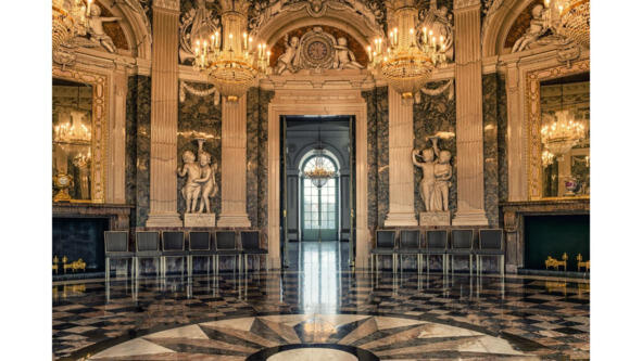 Одновременно с этими событиями двенадцать курьеров поочередно заходят во дворец, проходят в зал для приемов, открывают дипломаты и вынимают из них ларцы из драгоценных пород дерева. Оставляют ларцы на столе и выходят в зал ожидания.