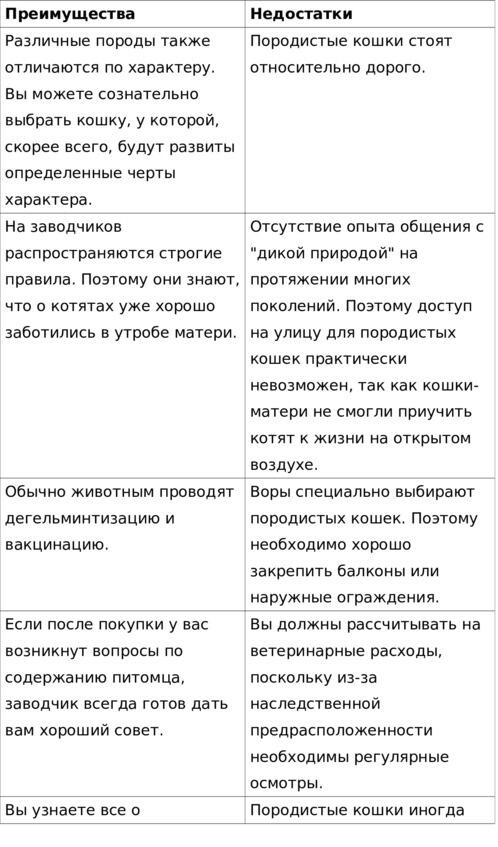Преимущество взрослой кошки заключается в том, что предыдущий владелец может многое рассказать о животном. Например, вы знаете, подходит ли эта кошка для содержания только в помещении. Кроме того, предложение взрослых кошек гораздо больше, чем предложение котят, потому что многие владельцы отдают животных по разным причинам. Только у породистых кошек малышей на рынке обычно больше, чем взрослых животных. Тем не менее, цены на взрослых животных обычно ниже.