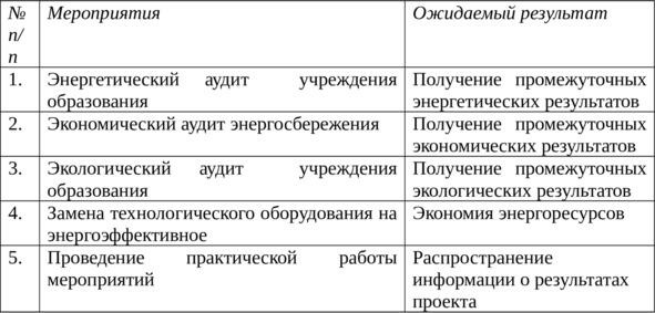 Мероприятия, реализуемые в рамках проектов, предусматривают формирование основных направлений деятельности «Объекта» в сфере эффективного использования энергетических ресурсов в соответствии с республиканским и областным законодательством.
