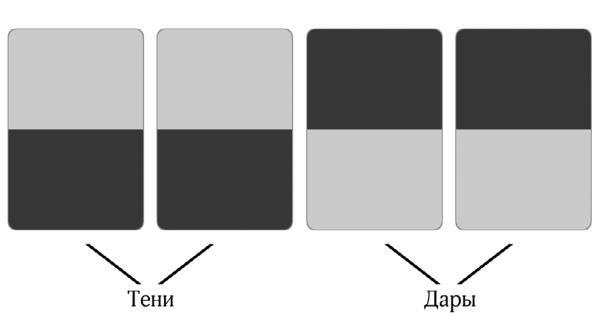 2. Первые две карты нужно выложить Тенями вверх, вторые две вверх Дарами.