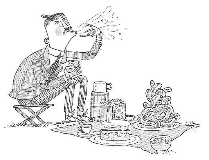 Какое милое у вас покрывало! сделала комплимент миссис Хвостоун. Стоило ей бросить взгляд на тарелку с сосисками, как у неё потекли слюнки. А это, кажется, именинный пирог?