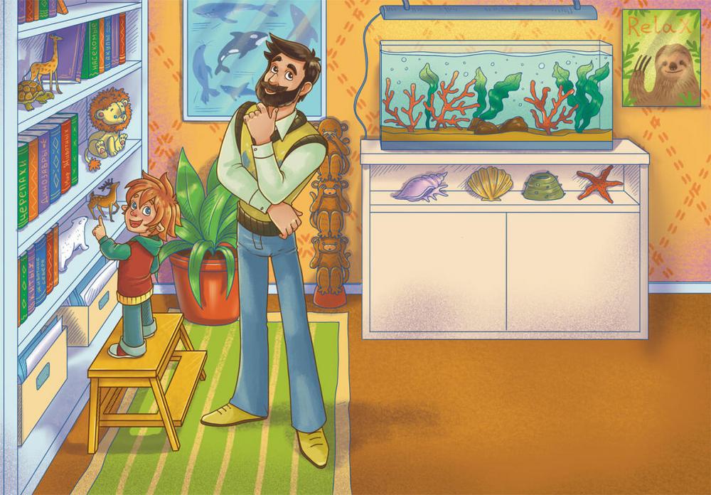 Как много здесь книг про животных. А некоторые ещё и с картинками, так интересно! Дядя Кузя, как хорошо, что ты пришёл. Я разглядывал твои книги про животных и хотел спросить, какие из них у тебя самые любимые.