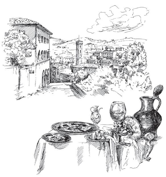 Но не пугайтесь! Эта книга ни в коем случае не справочник, хотя мы научимся различать трюфель и узнаем его историю. В первую очередь это рассказ о городках Тосканы, Пьемонта, Марке и Умбрии, их легендах, интересных местах, блюдах и рецептах. Обо всем, что и составляет настоящую сельскую Италию. Как рассказы бабушек и тетушек, всегда готовых к общению, пока руки привычно лепят тортеллини или раскатывают тесто для тальятелле.