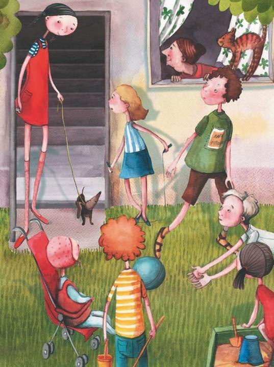 Все, кто был во дворе, собрались вокруг дерева. Они и чирикали, и подпрыгивали. Девочка с пружинными кудряшками даже протягивала свою недоеденную булку и кричала: «На-на-на!» Как будто звала собаку.