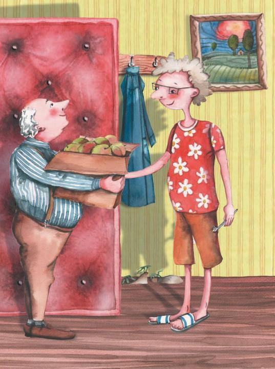 У нас дома теперь настоящий сад. На каждом шкафу полным-полно ярко-красных яблок.