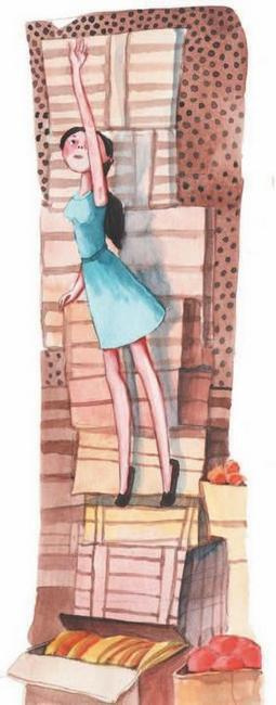 Ящики от фруктов стояли один на другом. Такие башни любят строить малыши. А на самом верху на цыпочках стояла худенькая черноволосая девушка. Эсма. Она тянулась вверх, стараясь кончиками пальцев достать до чего-то что было очень высоко, на самой верхней полке, под потолком