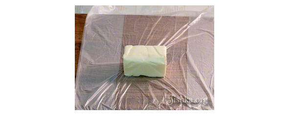Сливочное масло (50 грамм = 1/4 пачки) завернуть в пищевую пленку и положить в морозилку минут на 2030.