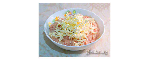 Добавить в фарш и все размешать. Положить в холодильник на 10 мин.