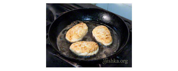 На хорошо разогретую сковороду влить 0,5 см растительного масла без запаха, дать ему нагрется и выложить котлеты. Обжарить их с 2-х сторон до румяной корочки (примерно по 15 мин на каждую сторону). Сковороду крышкой не накрывать!