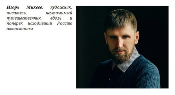 Заявился, как обычно, старый друг Игорь Михеев. Он всегда заявляется, когда мимо проходит. Кроме того, что Игорь художник (обложки моих книг его творения) и писатель (почитайте его книгу «Как во сне», удивитесь!), так он еще заядлый автостопщик. Каждое лето отправляется куда глаза глядят. Вот и сейчас, возвращаясь с Байкала, заглянул ко мне. И, потягивая мою изумительную настойку на морошке, предложил: